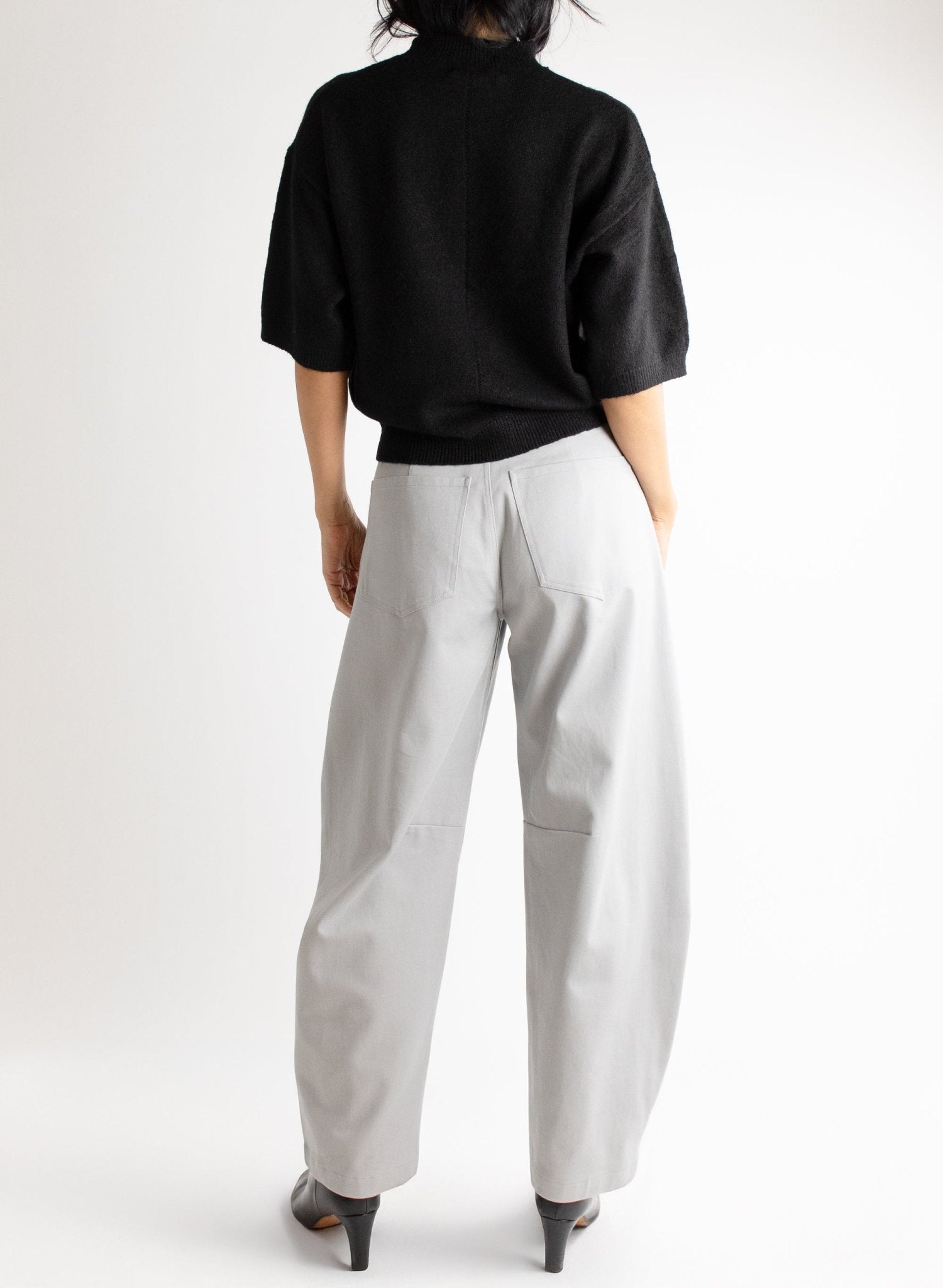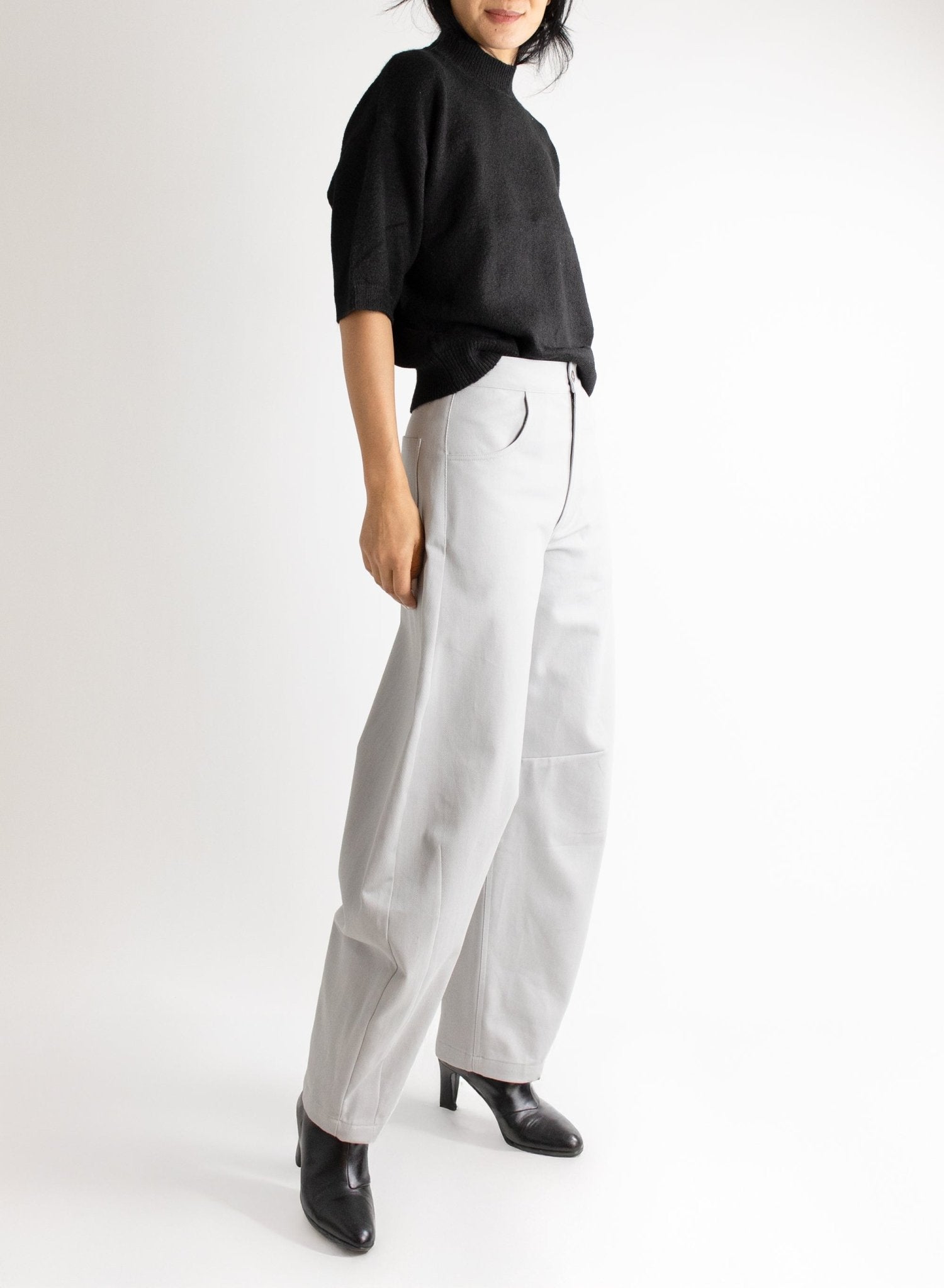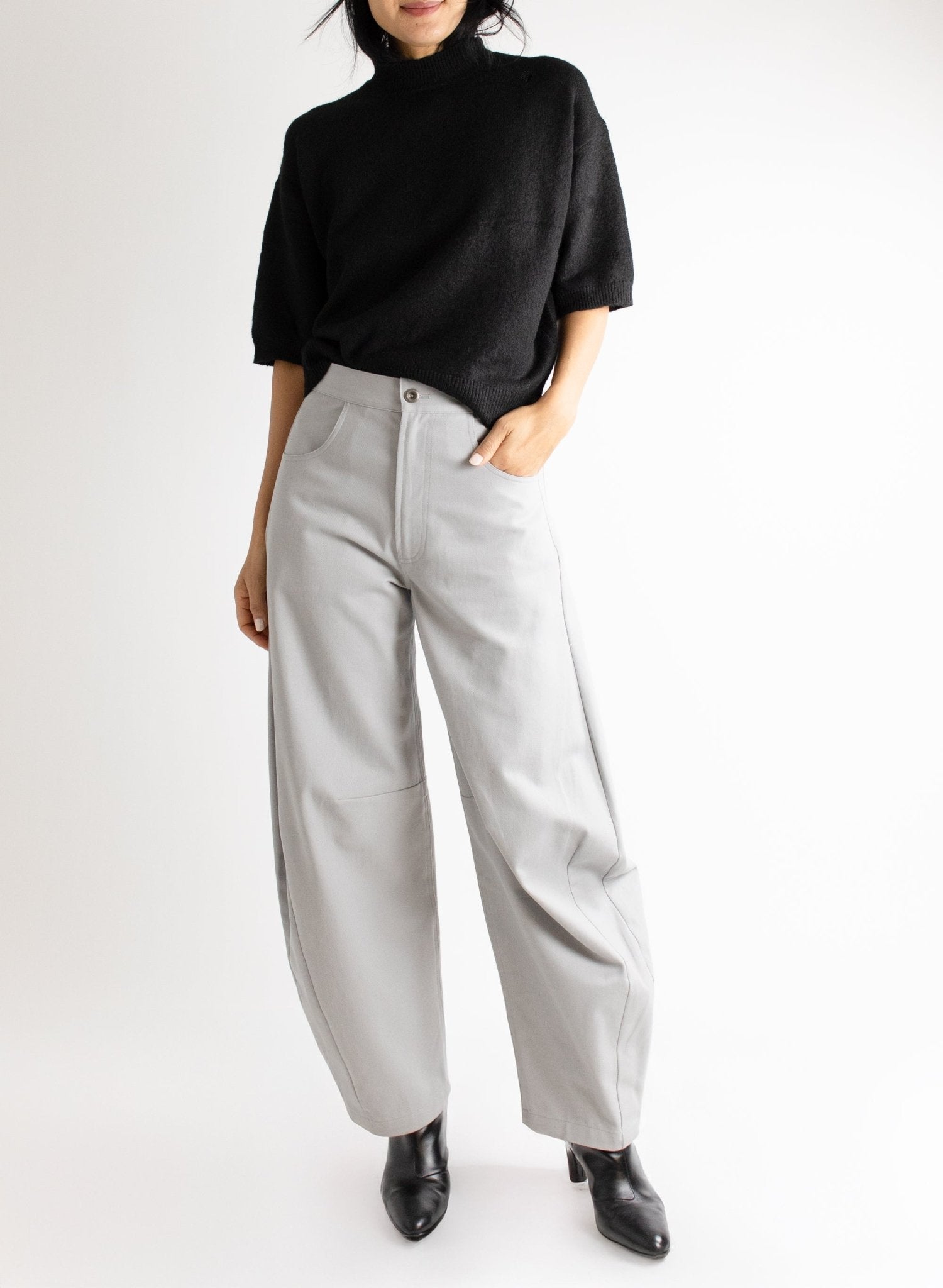- Barrel shaped wide legs