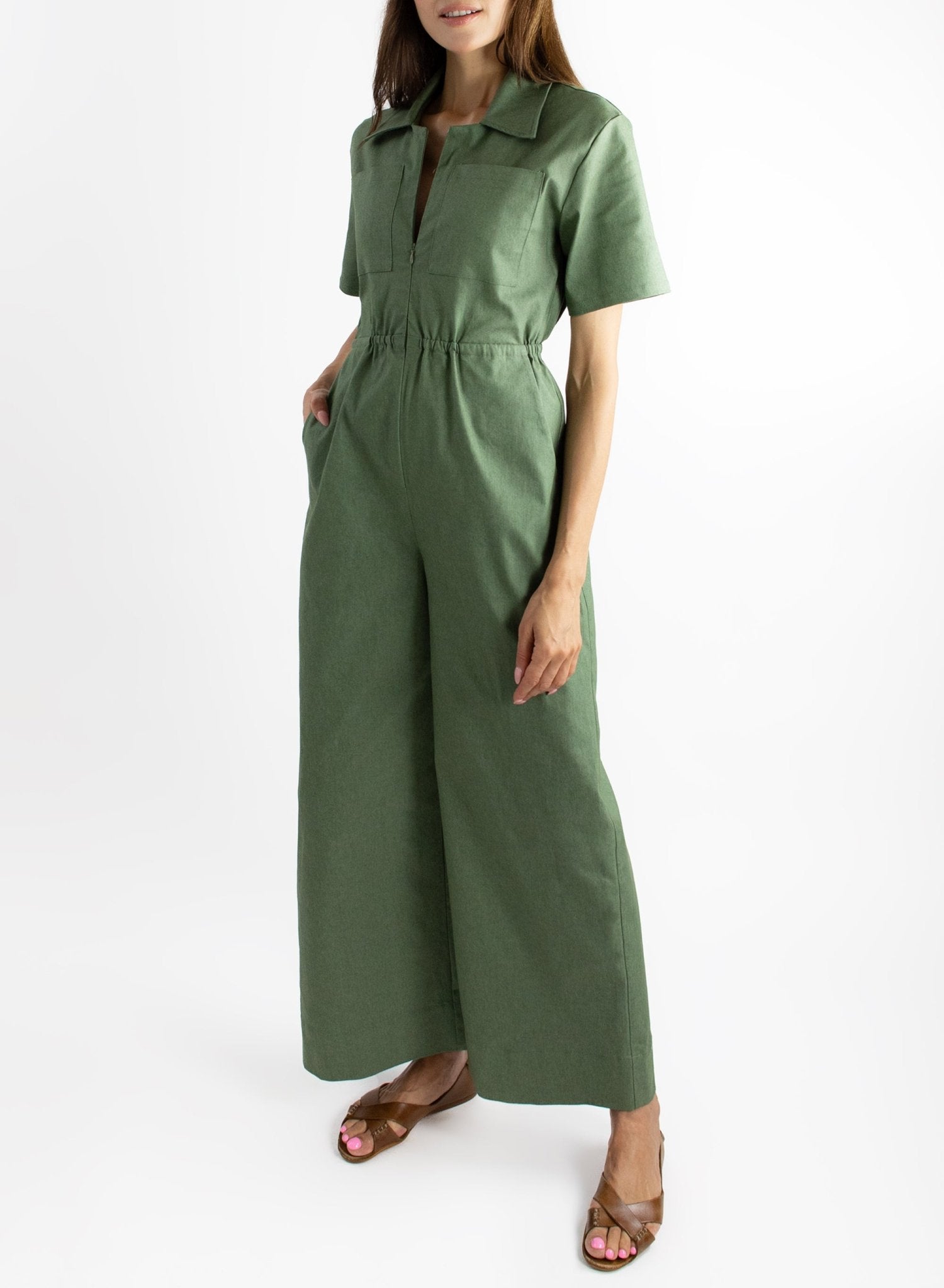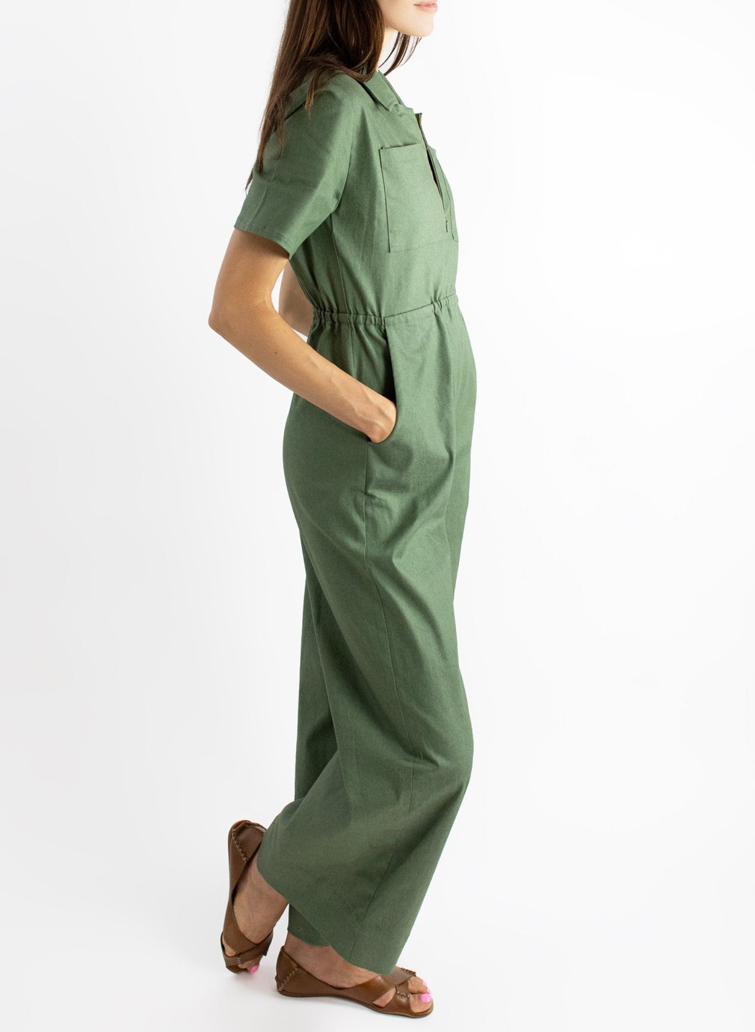 Meet the Workhorse Jump! This jumpsuit is a wardrobe essential with an elastic waist, wide legs, and elbow-length sleeves. Available in Sage, Ivory, and Denim for effortless spring/summer style.