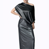 This is really a tee-shirt dress!! The most comfortable gown of all. Best on inverted-triangle bodies—the neckline softens a broad shoulder, and the curved shoulder seam balances a bigger bust. The soft, easy draping of the top hides a belly, and the tube-skirt bottom makes you feel tall. I love it with an ankle boot in the winter and an understated flat sandal with minimal jewelry—oh so chic.