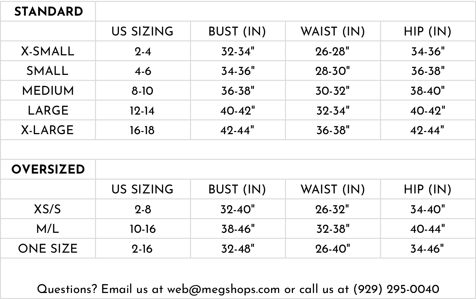 Have questions? Contact Us at web@megshops.com or give us a call at (929) 295-0040