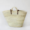 A handcrafted French market basket, the ultimate sustainable product made by farmers in Morocco from fallen palm fronds. Sturdy leather handles, and a lightweight yet strong body make it ideal for food shopping, a beach bag, or a weekender.