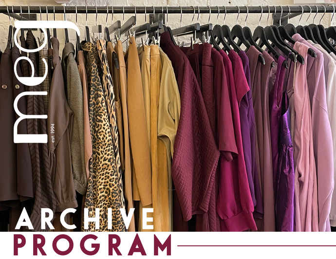 Donate your gently used Meg clothing to the Archive to keep it out of the landfill and give it a new life. Plus, receive one 15% off credit to use the next time you shop for every item donated.