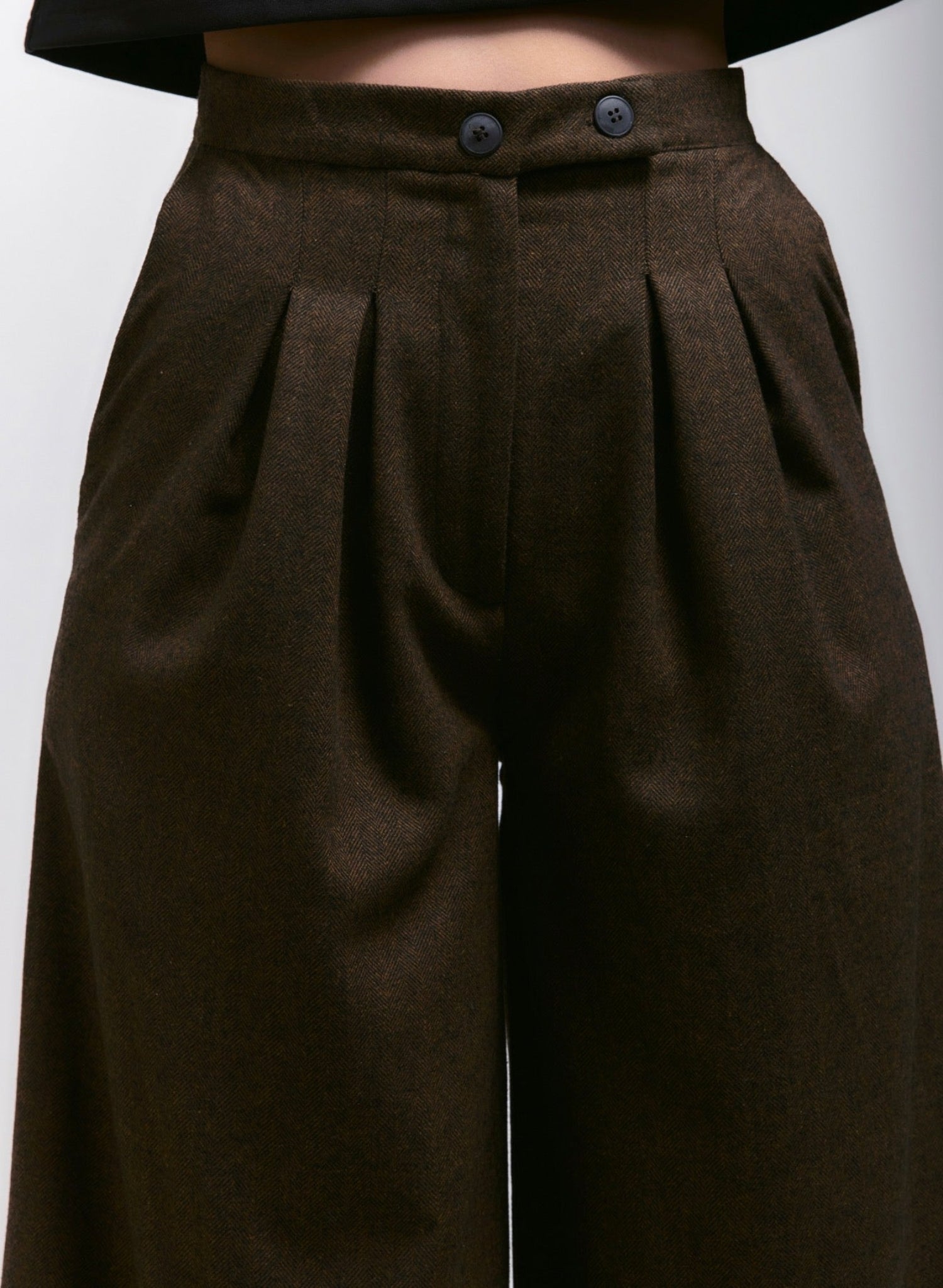 Atlas Slouchy Trouser - Brown Herringbone